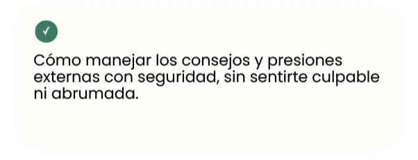 ➡ Tu mamá, tu suegra y tu vecina te dan consejos contradictorios… y ninguno te da verdadera tranquilidad.